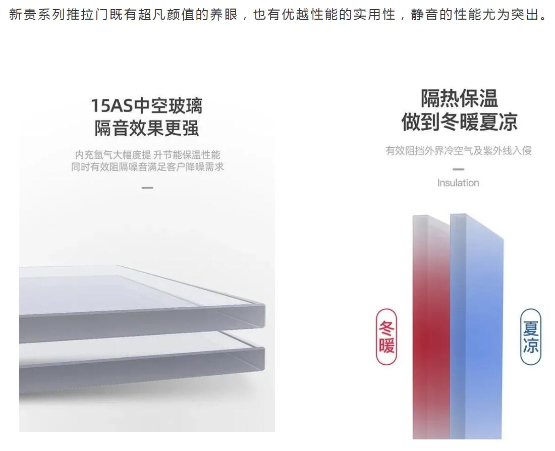 亿合门窗新贵系列推拉门既有超凡颜值的养眼,也有优越性能的实用性,静音的性能尤为突出。