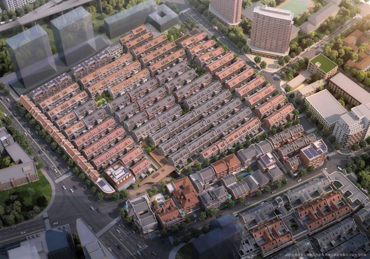 1⃣ 项目南侧独立商业地块约9000平米,打造石库门风格商业街区;