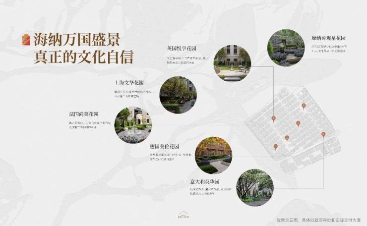 呼应历史节点的场所精神,荟萃世界花园经典,融入项目六大景观花园节点,汇成海派花园的园区巡礼。