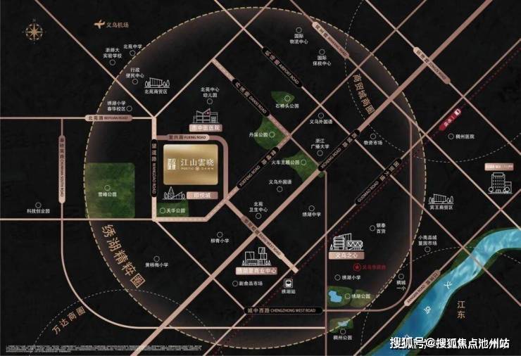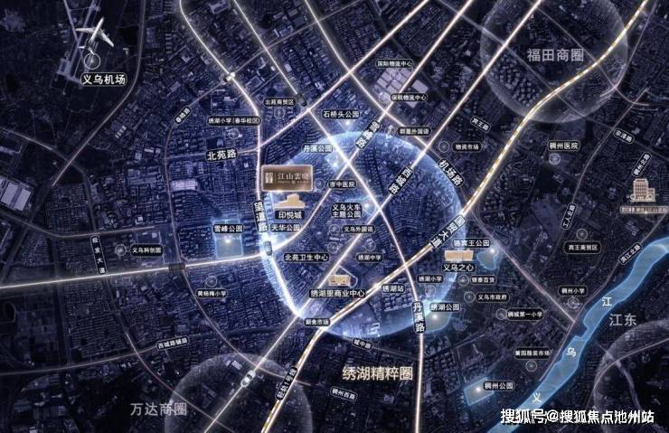 紧邻主干道北苑路、雪峰路、西城路、丹溪路、望道路、国贸大道,三横三纵交通路网,自驾约半小时直达全城;直线约1.3公里金义东轻轨1号线绣湖站,直线约3.6公里接驳义乌国际机场,链接世界主场。