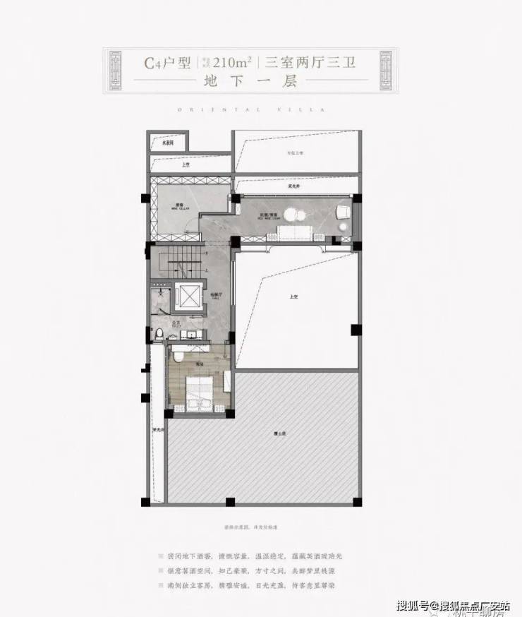 以项目东北角的建面约330㎡H户型为例,地下二层的室内可配置保姆房、