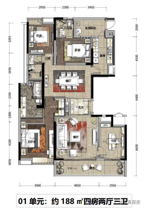 2,提供112平方米三房两卫、188平方米四房三卫、193平方米五房三卫等多种户型,功能分区清晰,大户型设计适合多孩家庭或三代同住。