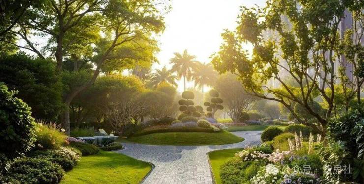 以法国莫奈花园为蓝本,搭配约250种珍稀花草,打造约2万方莫奈花园,以芬芳香草疗愈与雾森系统,实现微环境 调节与超五感自然疗愈。