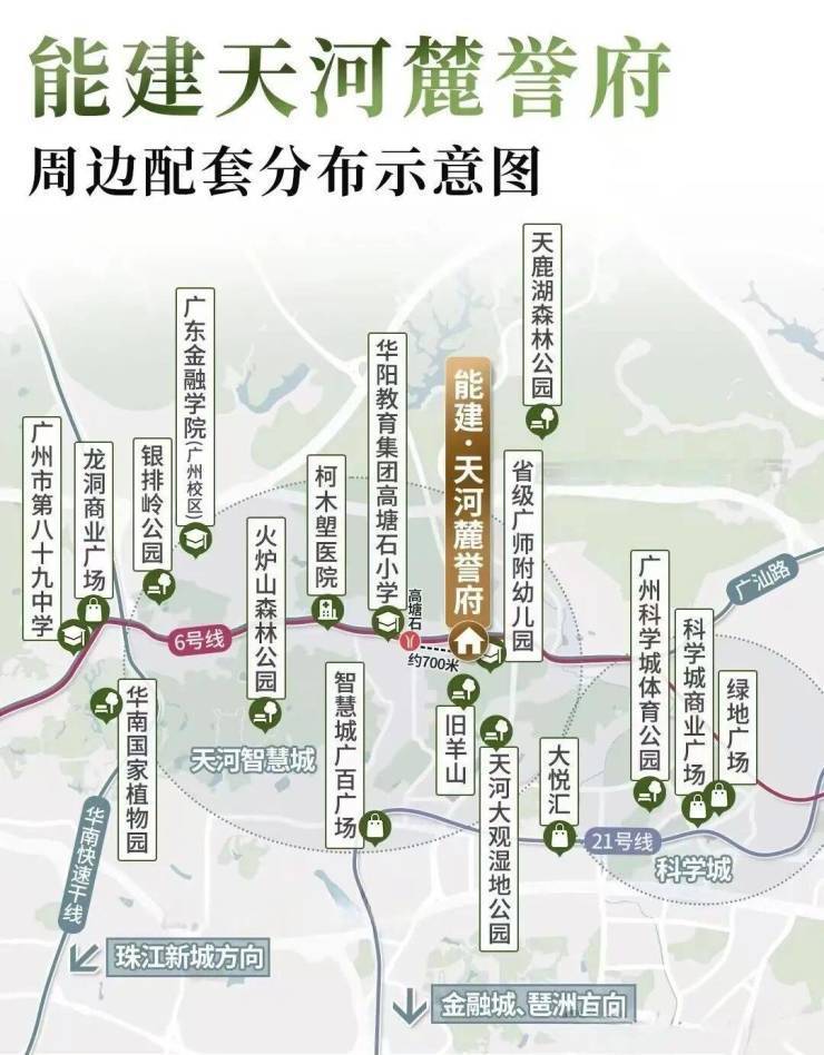 能建·天河麓誉府坐落于天河智慧城的核心区域,这一地区被定位为广州的“硅谷”,是天河区未来发展的重心之一。项目距离地铁6号线高塘石站仅约700米,便捷的交通网络使其能够快速到达珠江新城、金融城和琶洲三大城市CBD。