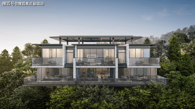 建筑涵盖类独栋、双拼、三联排等型制,汲取东方风骨,以玻璃为主材,让建筑消隐于自然,获得沉浸式体验。