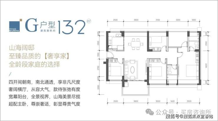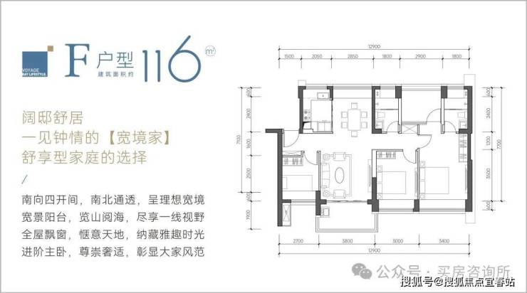 132㎡5房2卫:竖厅南北通,客厅开间3.8米主卧3.5米,对比116尺度基本一样,主要就是多了一间房。