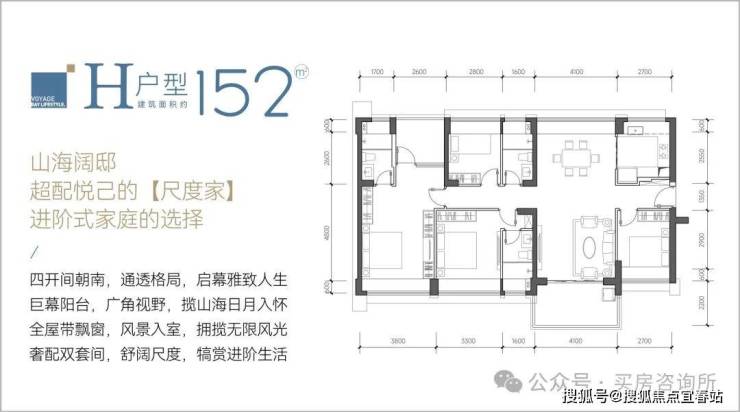 152㎡5房3卫:竖厅南北通,客厅开间4米主卧3.8米,双套房朝南。