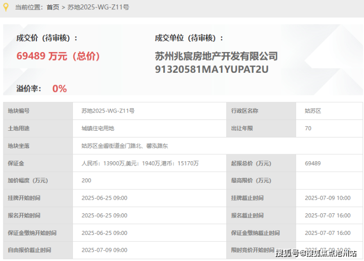 北区则是今年7月9日,建发以底价69489万元竞得苏地2025-WG-Z11号地块,成交楼面价22800元/平。