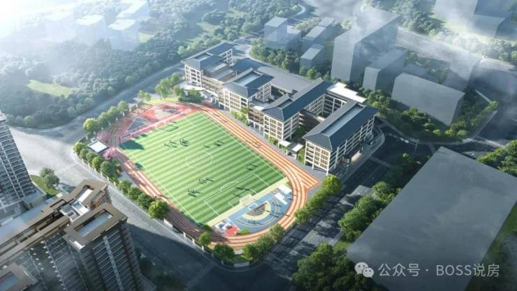 项目配建一所18班幼儿园,以及45班九年一贯制学校,目前该校已官宣引入广东实验中学教育集团办学,由广东实验中学派出团队管理。