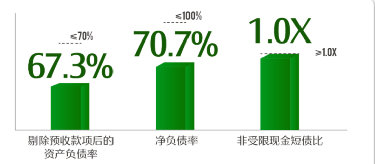 年报显示,中骏集团去年的非受限现金与短期债务的覆盖率为1.0倍,剔除预收款项后的资产负债率为67.3%,净负债率为70.7%,远低于“三道红线”指标要求。