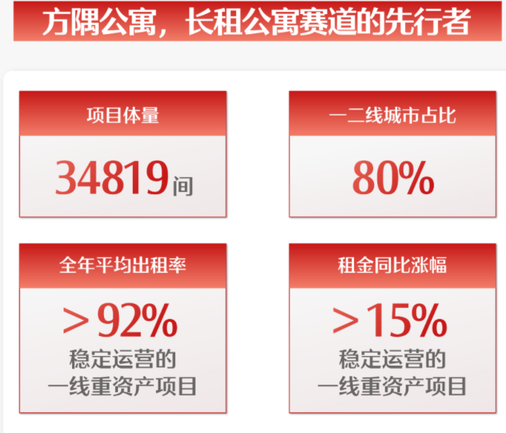 在基金合作方面,方隅与3大基金合作成立13.8亿美元的投资平台,共计已投资8个长租公寓项目,投资总额达68亿元人民币。