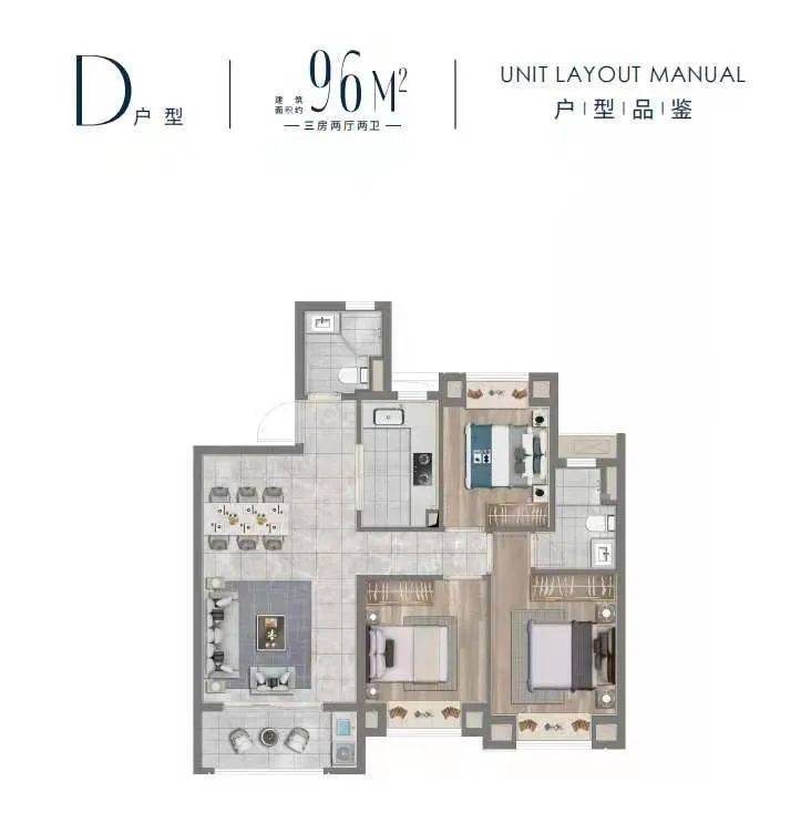 【大名城·映玥】此次推出主力户型为建面约84-96㎡(3房)的洋房,1梯2户私密设计,容积率低至约1.2,建筑密度约21.65%,车位配比1:1.1。