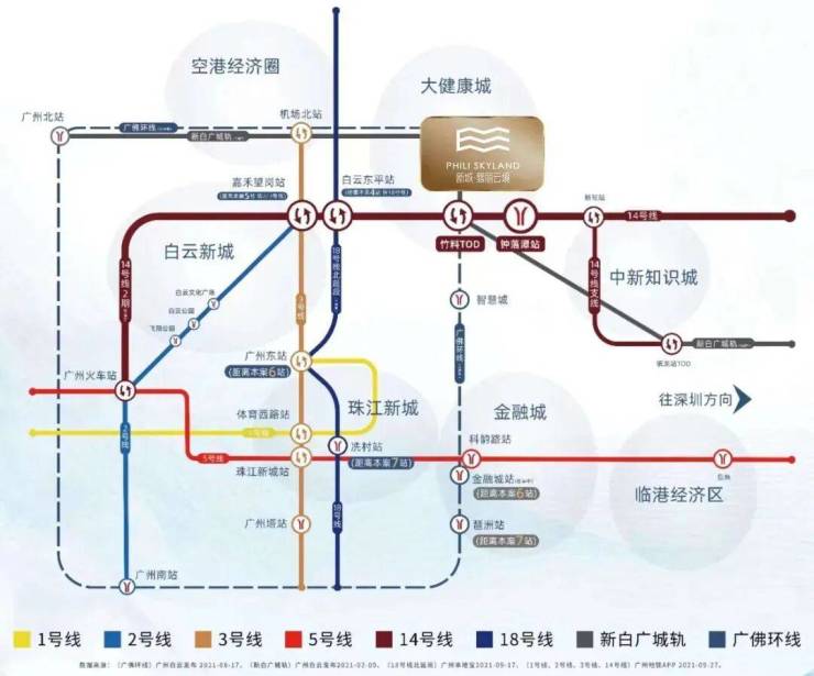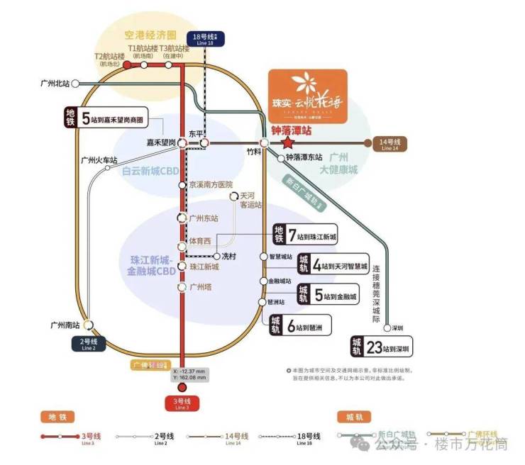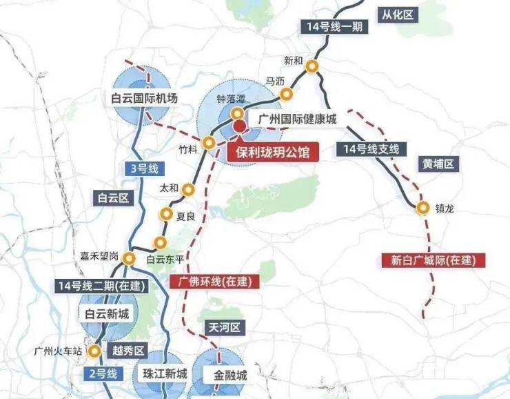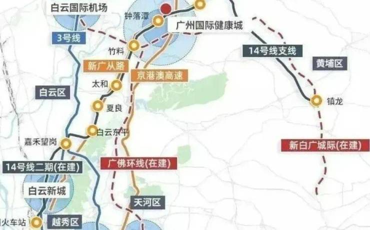 三个新盘项目与已经开通的地铁14号线钟落潭站与项目直线距离只有500米,5站到达嘉禾望岗,接驳2号线到达飞翔公园、白云公园,去白云新城上班妥妥的。