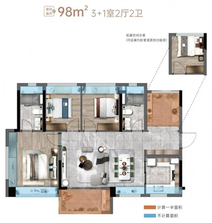 【同等面积多享一房】