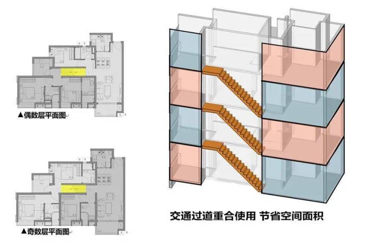 其一,是实用率接近100%,一套100㎡的单位,相当于一般平层120㎡的实用空间。