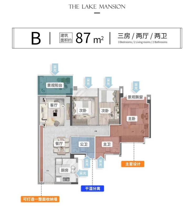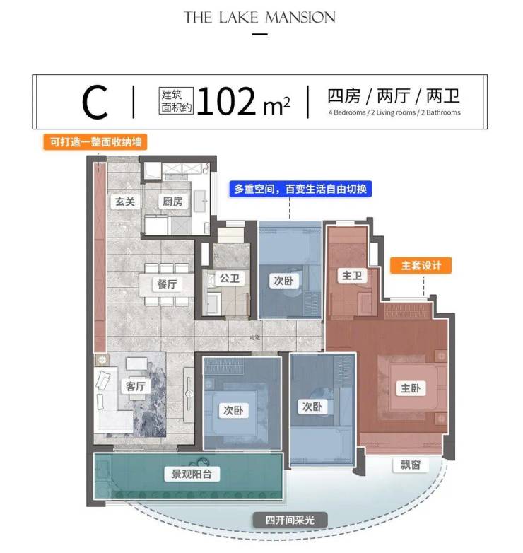 奢阔主套,私享“L”型豪华衣帽间及景观飘窗