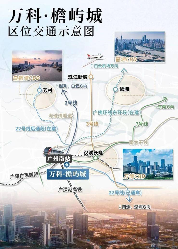 15分钟经广佛环线(25年底通车)至琶洲CBD,30分钟连通至白云机场