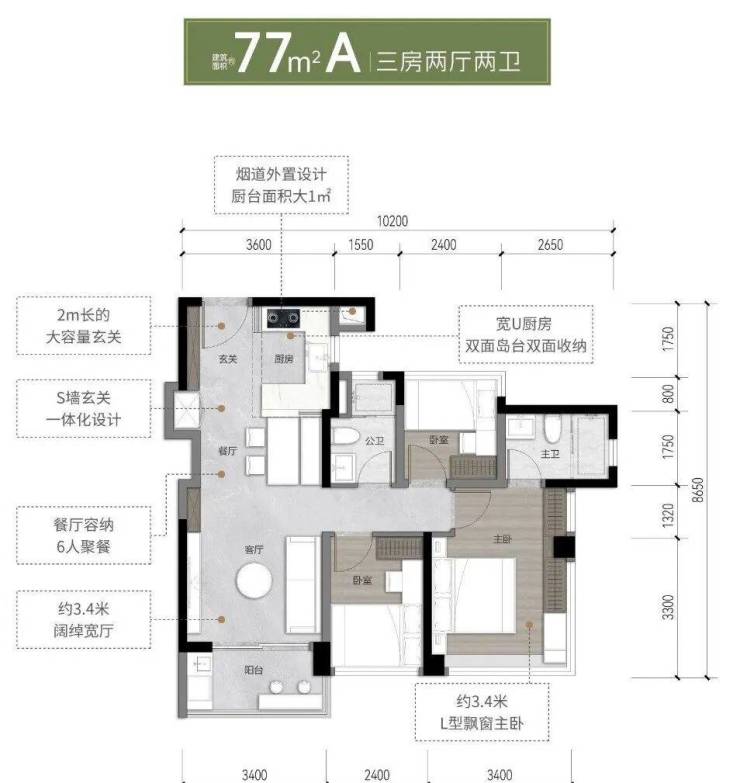 88㎡户型:7米超长阳台+12㎡餐厨一体化,满足家庭欢聚场景