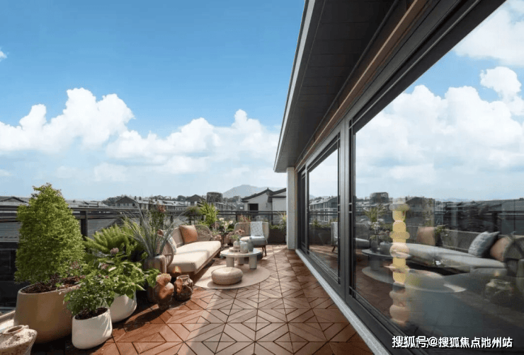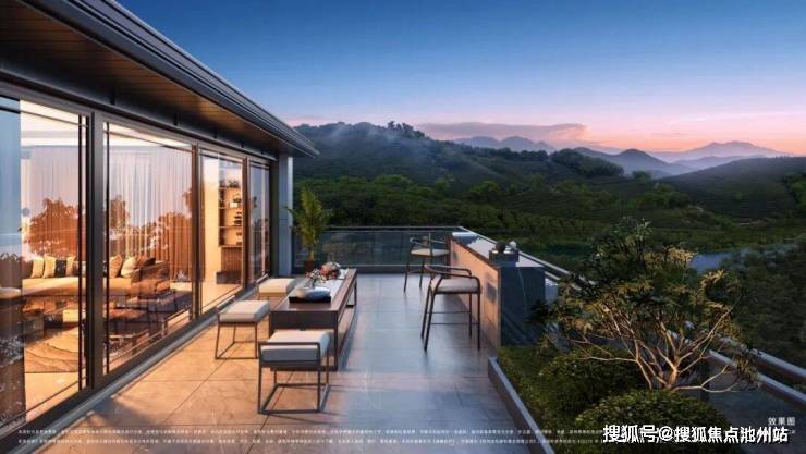 而溪映听庐的上叠,也有空间非常阔绰的阳台+露台,清晨站在露台上,直面群山的翠绿和4000个/立方米的负氧离子。