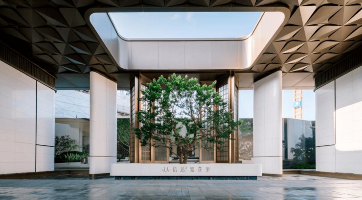 信达·繁花里萃取余荫山房的园林造景灵韵,糅合现代高奢酒店的简约笔触,打造高约9M的奢华归家门庭,配合荟萃了岭南美学的繁花艺术体验中心,为每一位归家的业主,打造尊崇的归家体验。社区外享约 2730㎡滨水公园与约 4512㎡繁花逸园,内拥逾1.5万㎡中央园林,以“三重归家礼序”铺陈,让业主每一步都是穿越风景的旅程。
