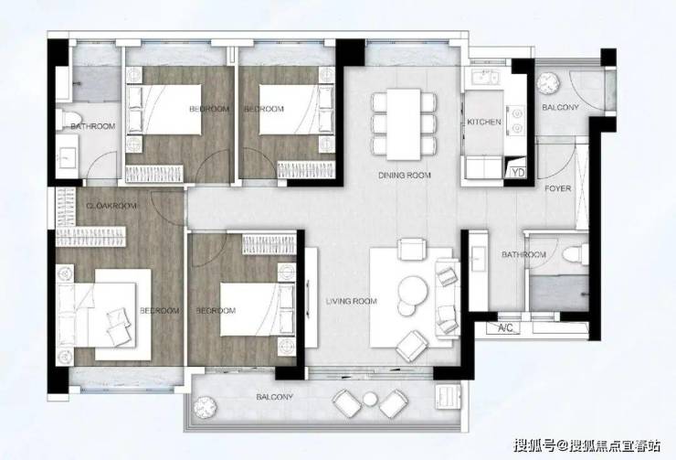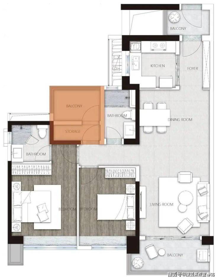 增加了全屋中央空调,客厅配有岩板面板金属包边背景墙