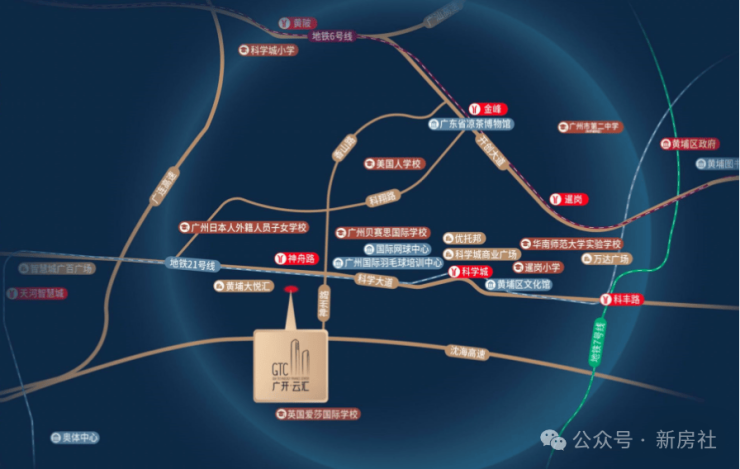 项目位于黄埔区科学城中心研发的办公组团,南侧邻近连接广东主要城市的广深高速,北侧毗邻科学大道,交通便利。20分钟直达广州金融城、琶洲;30分钟直达珠江新城、新塘TOD、40分钟达广州南站;广州东、广州白云机场。