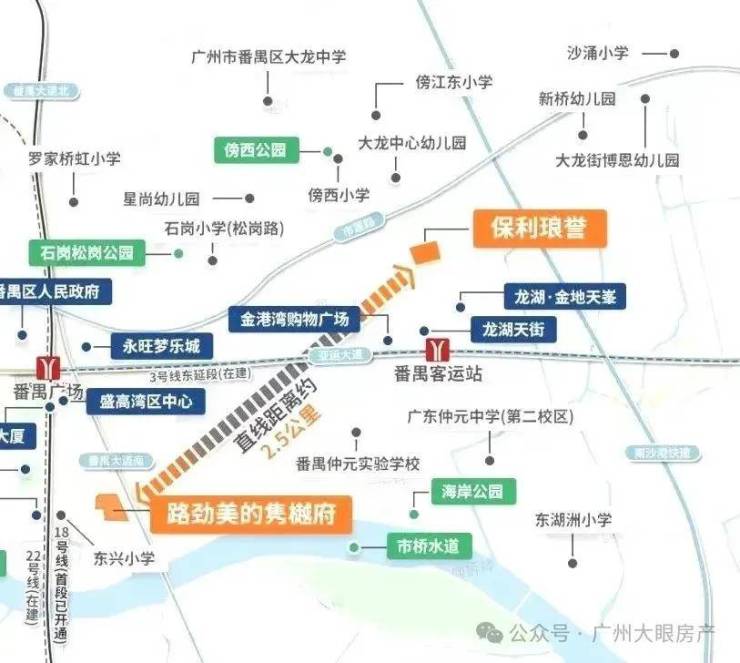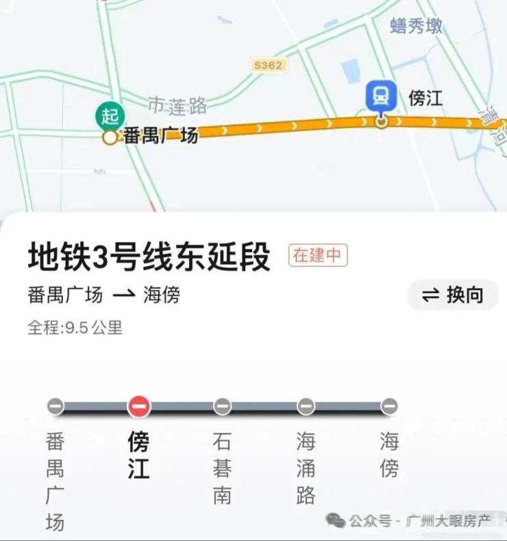 与3号线东延段傍江站直线距离约500米,从小区出发做地铁去番禺广场只需要一个站,乘坐地铁前往珠江新城也不需要换乘。