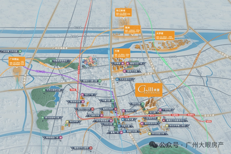 一站即达番禺广场站,里面有地铁3号线、18号线、22号线、3号线东延段、17号线(规划中)五轨交汇,一站畅行琶洲,两站通勤珠江新城
