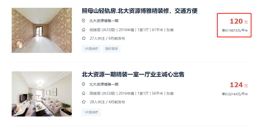 这点我们前文已经有过分析,我们再聊一个其他的,目前最最稳定可以享受两大名校的就是博雅一期的二手房,它的门槛是多少呢?较便宜的一套,120万。