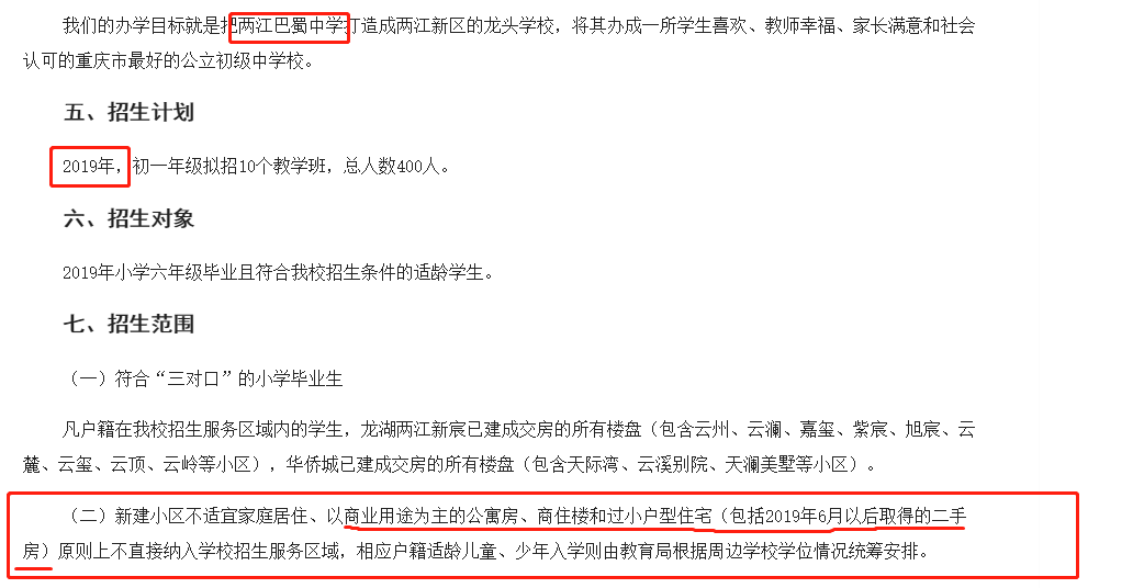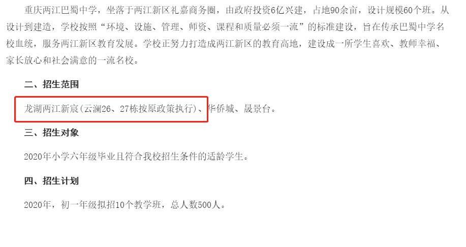 虽说后面通过一系列的方式迎来了重庆八中龙兴分校,但都还只是在建设中,具体的划片还没有准则出来,变数依然是有。