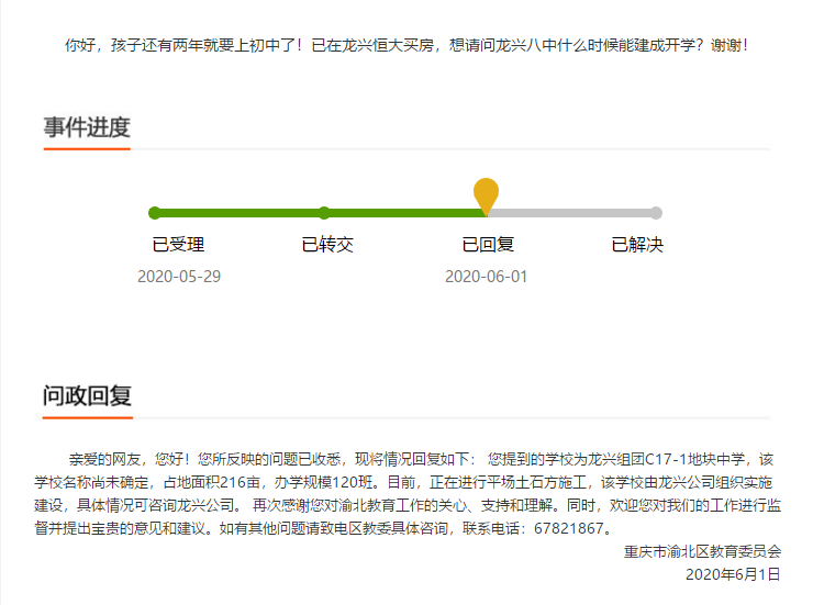 (图片来源于重庆网络问政平台)