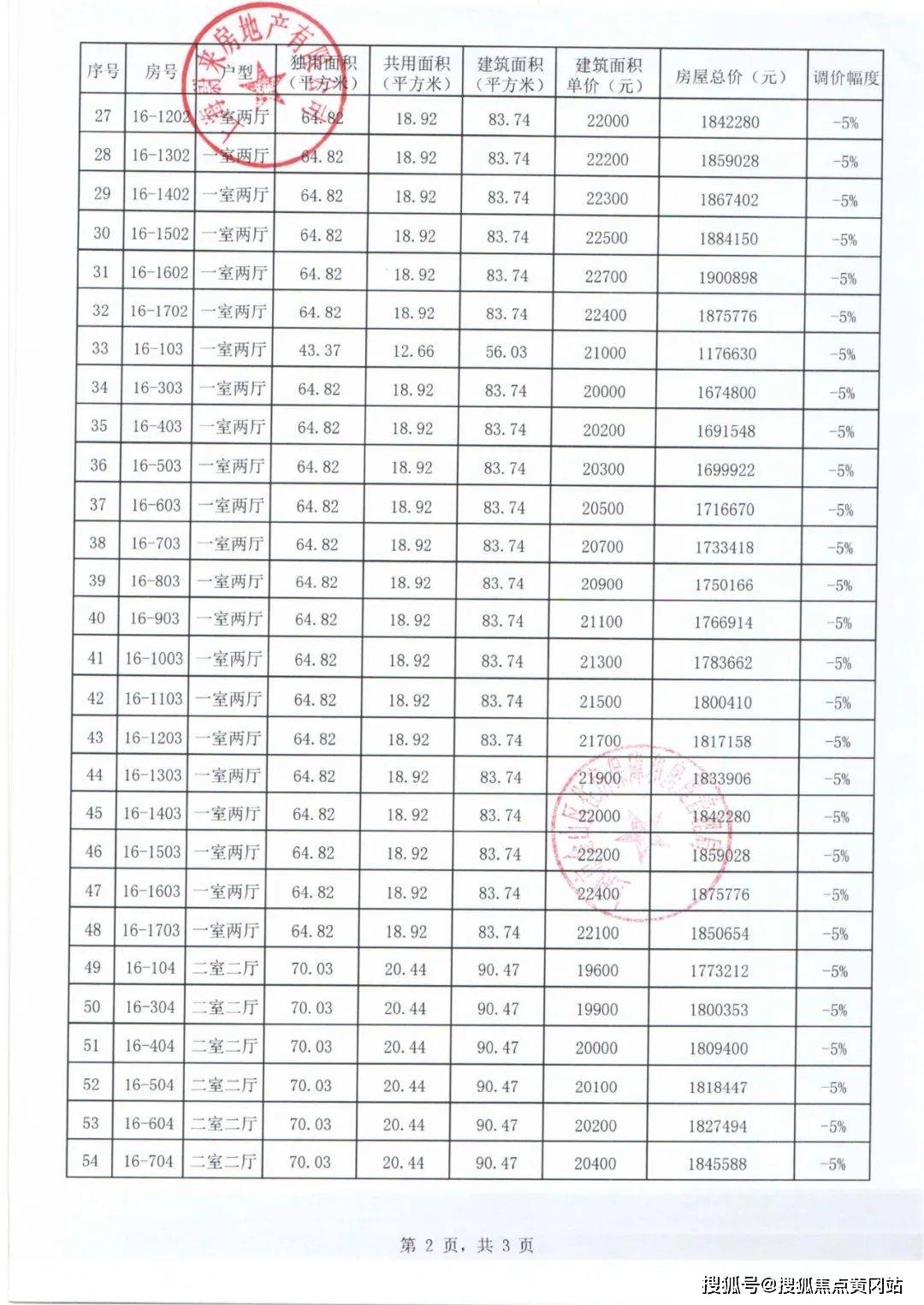 一房一价表: