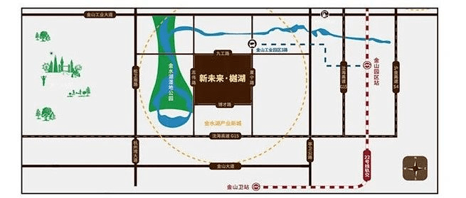 交通:22号线金山园区站,可到达上海南站,周边共七条高速、G15、G1501和S4等等,公交车有莲卫专线、二路公交等