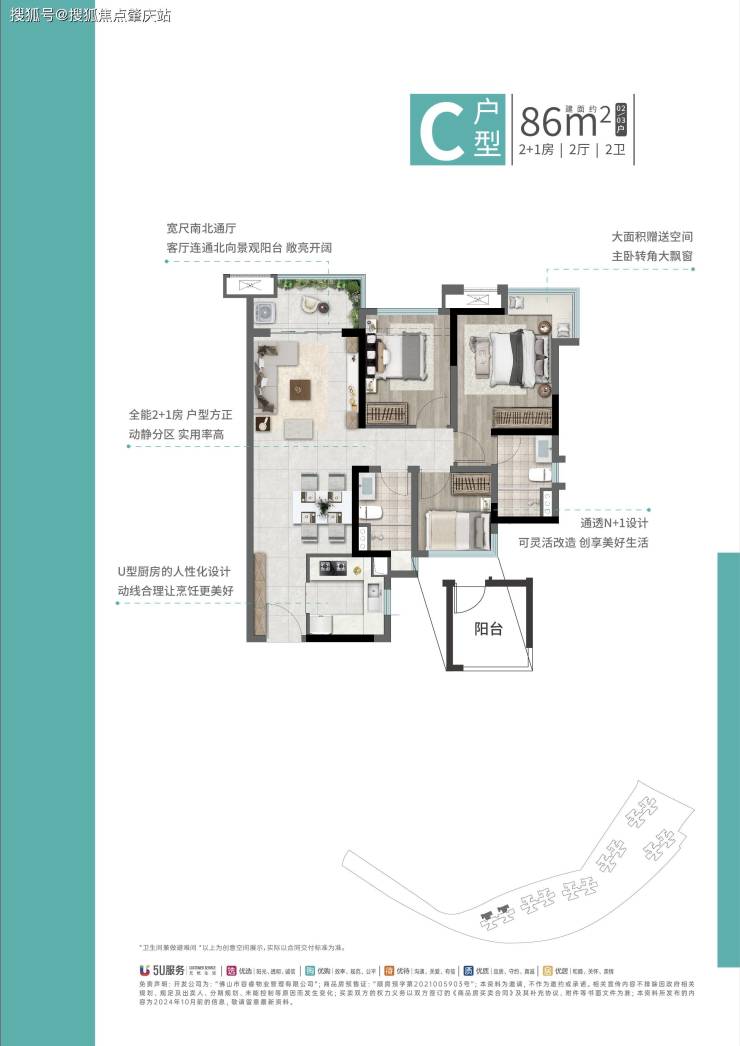 宽尺南北通厅,客厅连通北向景观阳台,敞亮开阔