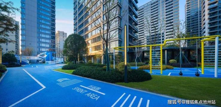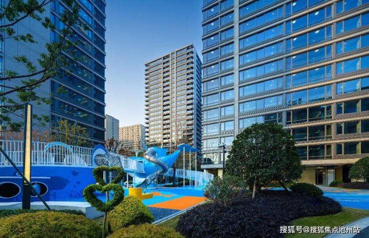 得益于围合式的布局,小区最大楼间距超过80米,一个约5000㎡的“内嵌式”中央主题景观在眼前铺展开来。