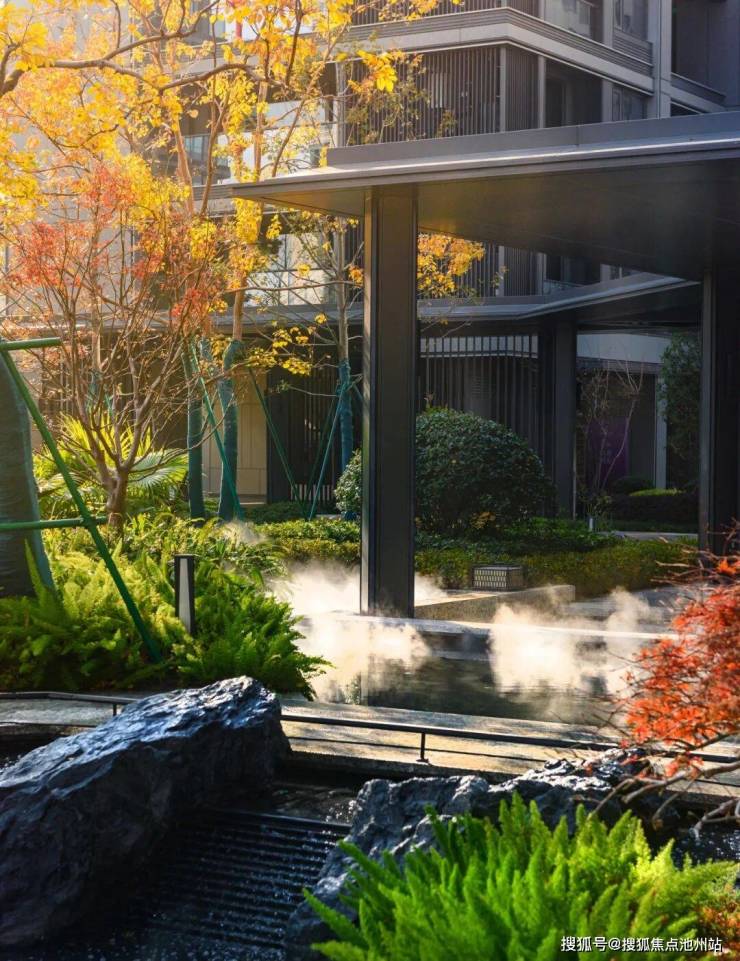 遒劲延展的乔木,繁茂的灌木,丰富的小品,错落有致地分布在各楼栋之间,每幢楼都可以享受到不同的景观体验,野趣自成。