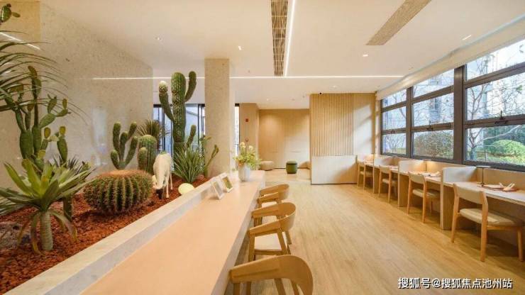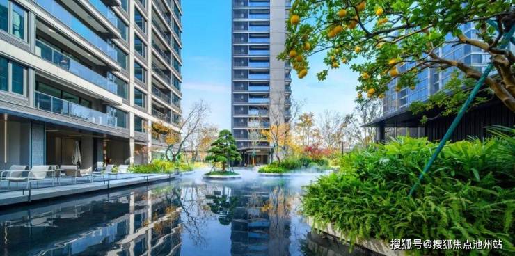 在江南里、蓝色钱江景观设计师宋淑华所在GTS蓝颂笔下,潮映望月府成了一座充满活力的“度假会客厅”。以“一廊三心九园”为理念打造的景观体系已逐一落成。