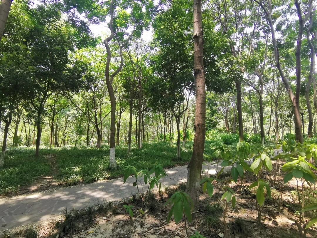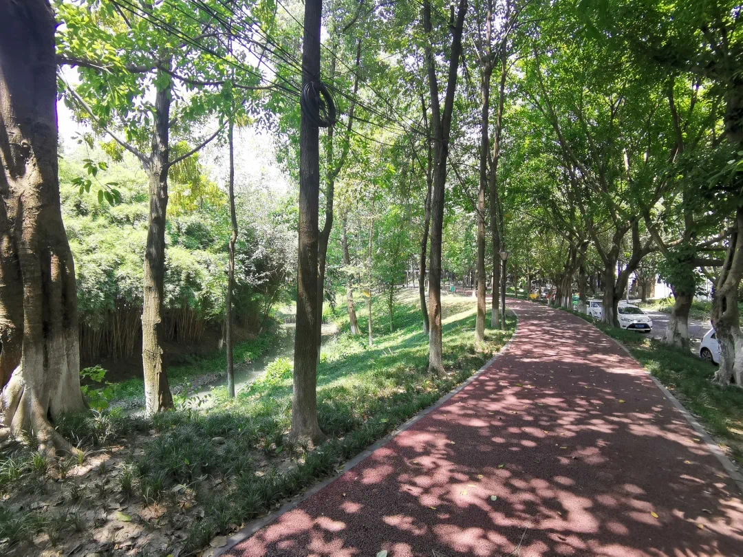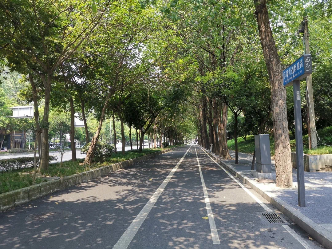驿都大道上的绿道沙河河畔的绿道,即使是炎热的夏天也很阴凉。