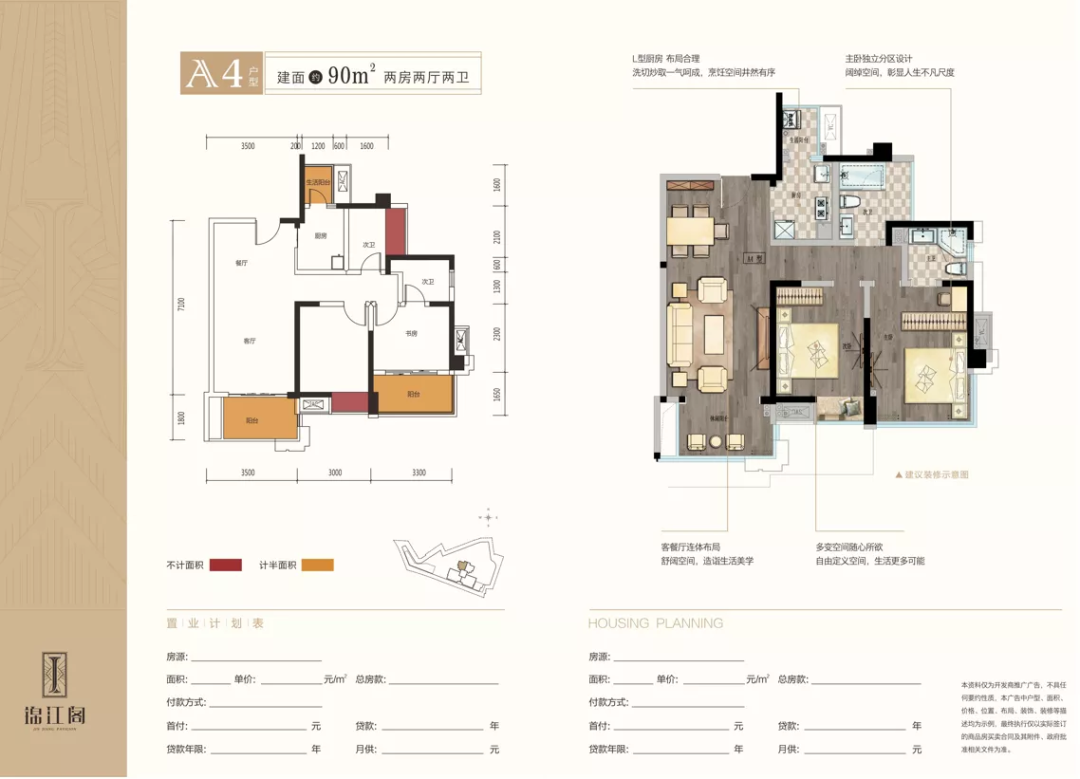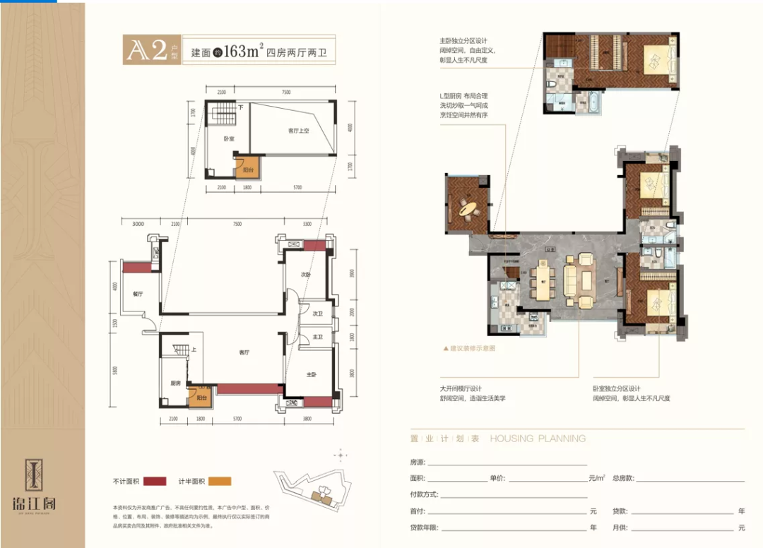 项目是清水交付,户型可改造的空间较大。比如90平可以改套三,163平楼上可以做主卧也可以做客厅。
