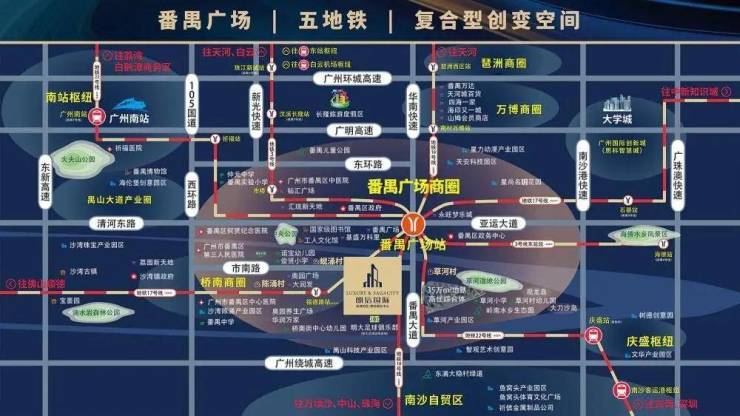 1站万博,2站南站,5站天河,五地铁一线直达9大商圈5大枢纽