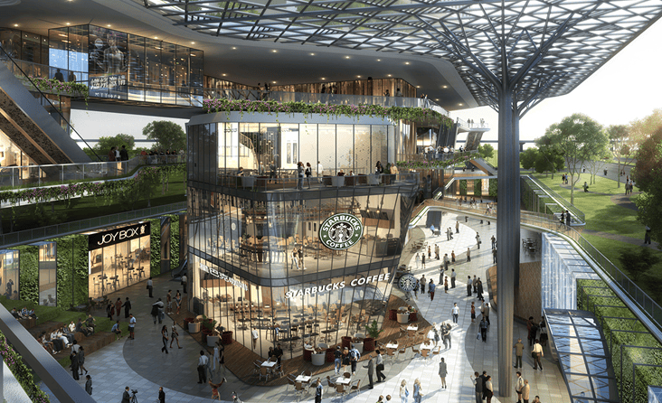项目由国际设计团队DPA亲自操刀,对标新加坡“Scotts大厦”、伦敦“无尽城”等国际垂直城市标志,打造成以商业/休闲/办公/生活四维一体的新型旗舰商业综合体。