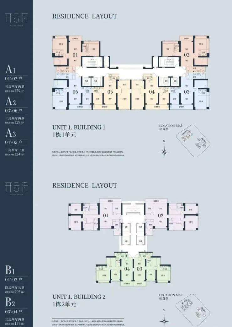 A1有两条腿,分别1-1栋01/02,主朝向是西北向,双龙抱珠格局。