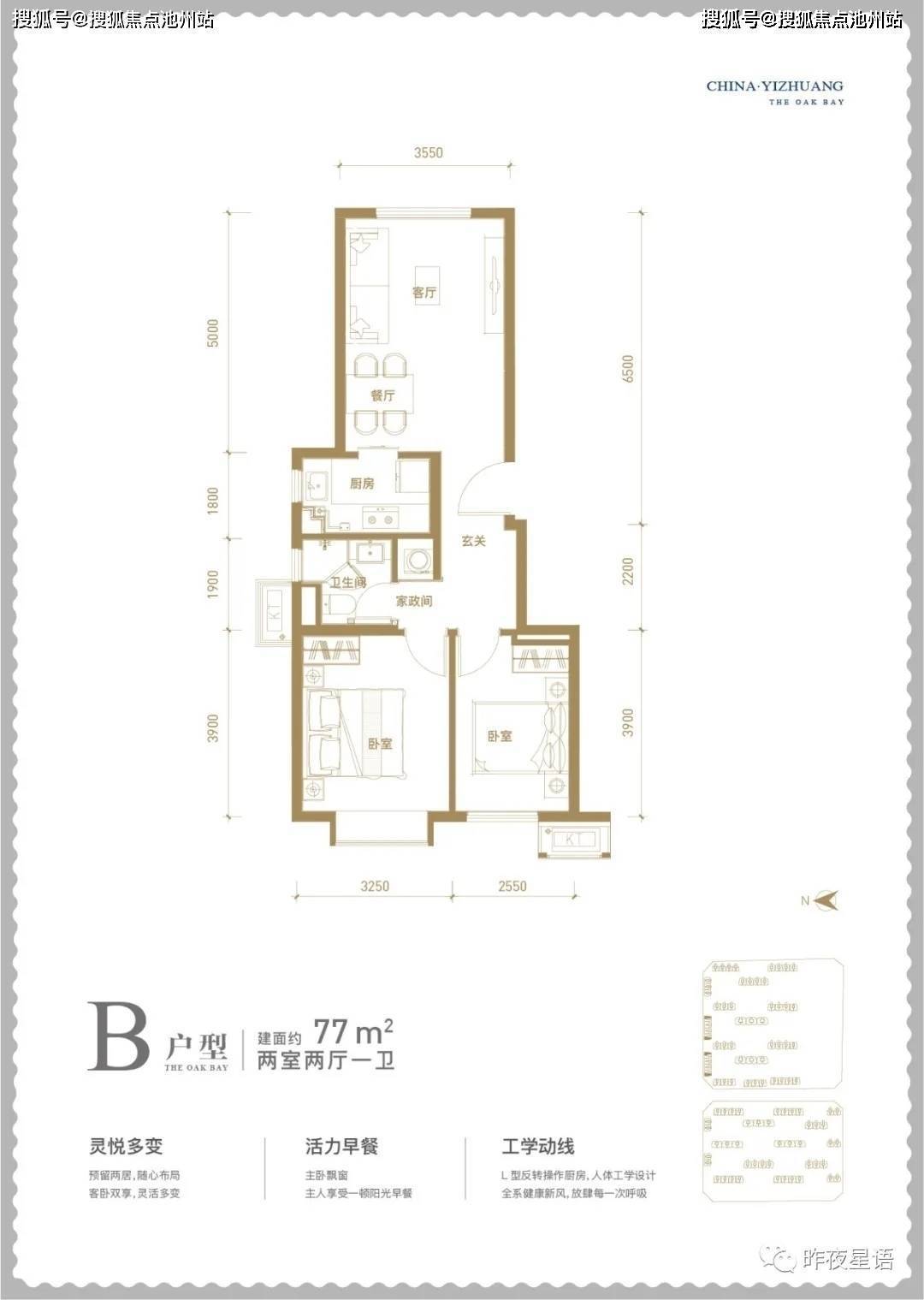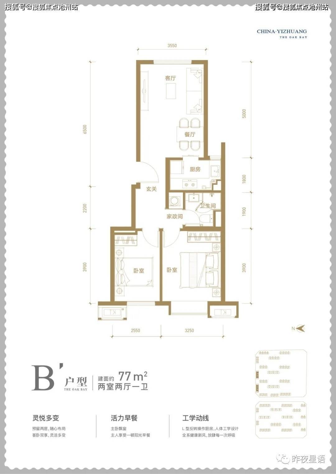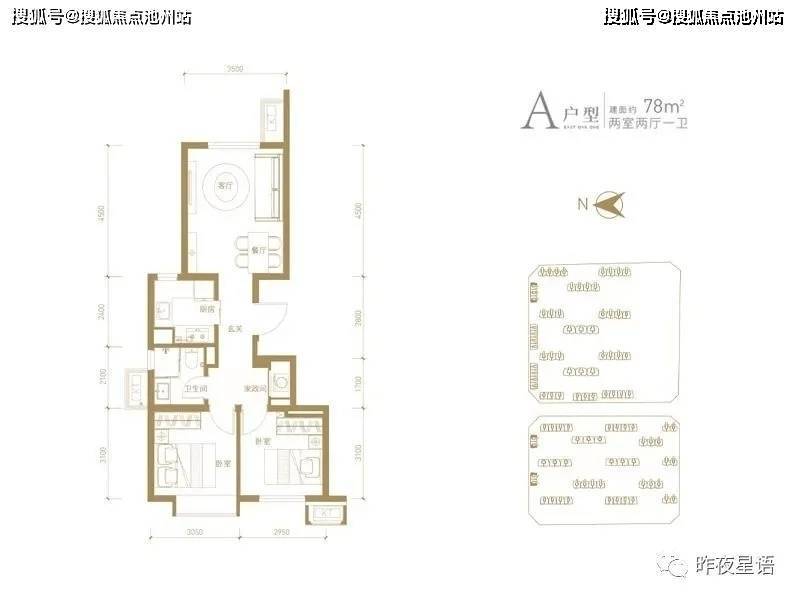 【得房率】:两居68.4%-76%,三居73%-79%,四居77%-79%
