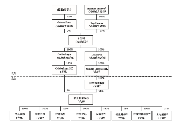招股书披露,在全球发售前,祥生活服务由Golden Stone持股2%,Top Honour持股98%。全资控股Top Honour的ShinlightLimited由ShinfamilyHoldings全资拥有,而ShinfamilyHoldings由家族信托的受托人TMF(Cayman)Ltd.全资拥有。家族信托乃由委托人陈国祥以陈及其家族成员为受益人成立的一项全权信托。