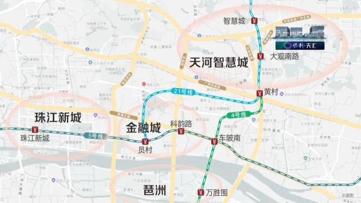 保利天汇距离21号线大观南站直线约780多米,还有规划中的19号线。1站即达4号线黄村站、换乘直抵琶洲、金融城和珠江新城。