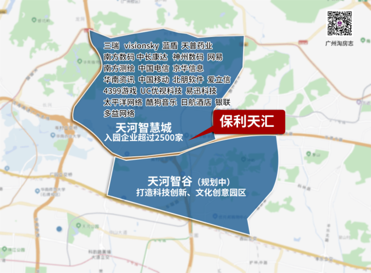 保利天汇所处位置是天河智慧城核心区,这里汇聚有网易总部、酷狗、南方测绘、小鹏汽车、极飞科技等企业大咖,此外德生科技、北明软件、极飞科技等新兴的高科技企业也纷纷进驻于此。