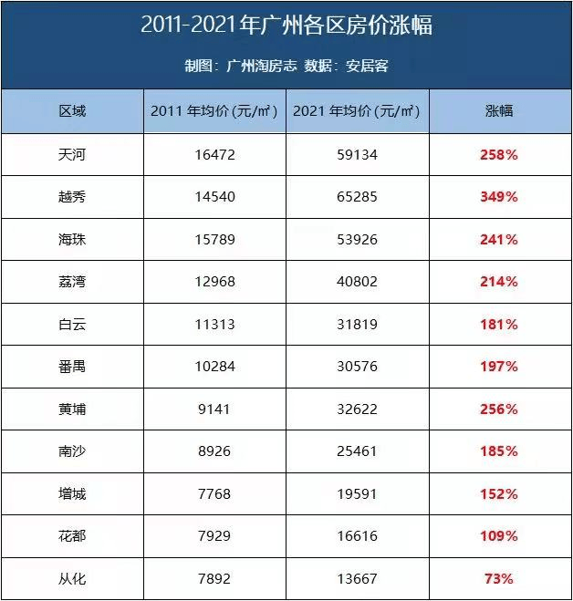广州黄金楼市十年,其中稳坐房价涨幅冠军宝座的,无疑是天河区,10年里涨了258%。