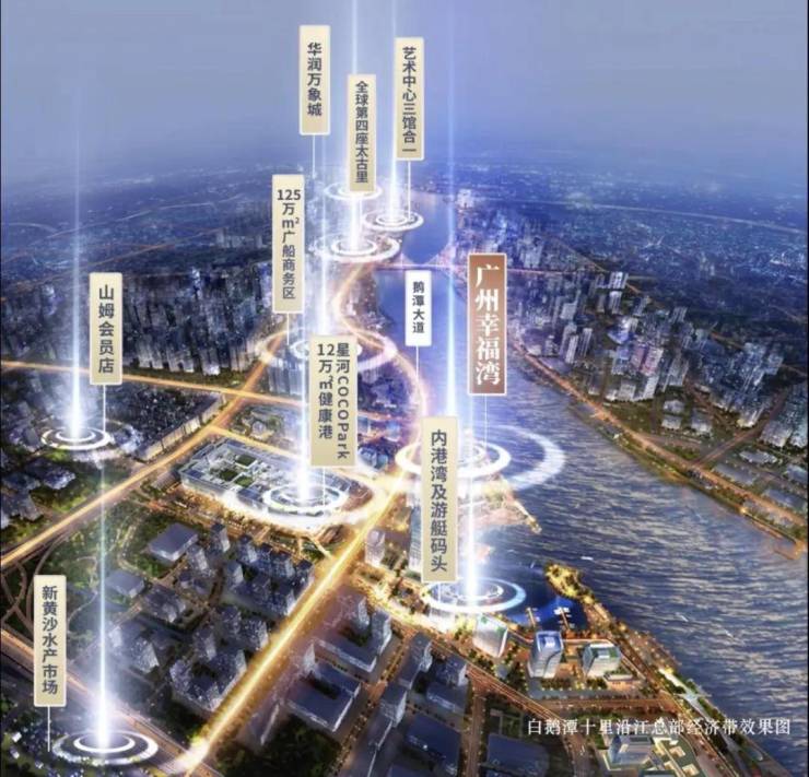广州幸福湾位于广州白鹅潭CBD,蕴含五色土和金砂的千年正脉之上,以200万㎡商务、商业、生活、休闲、大健康产业的多元化产业综合区广州国际健康港为依托,于三江汇聚之处,匠筑藏江健康社区。
