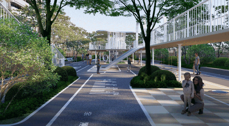 基于此,项目还把全龄段业主的生活图景,巧妙融入园林中。