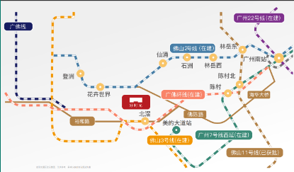 双地铁:佛山地铁3号线北滘站(在建)、广州地铁7号线美的大道站